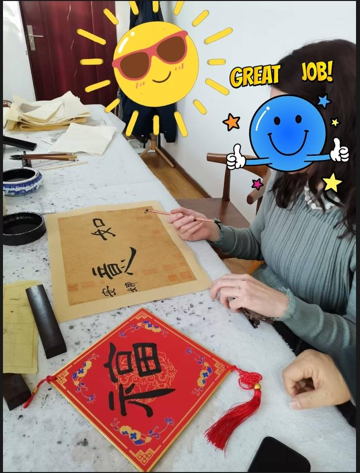 书法课非常有趣,老师讲解非常细致!中国的文化真的太让我着迷了!